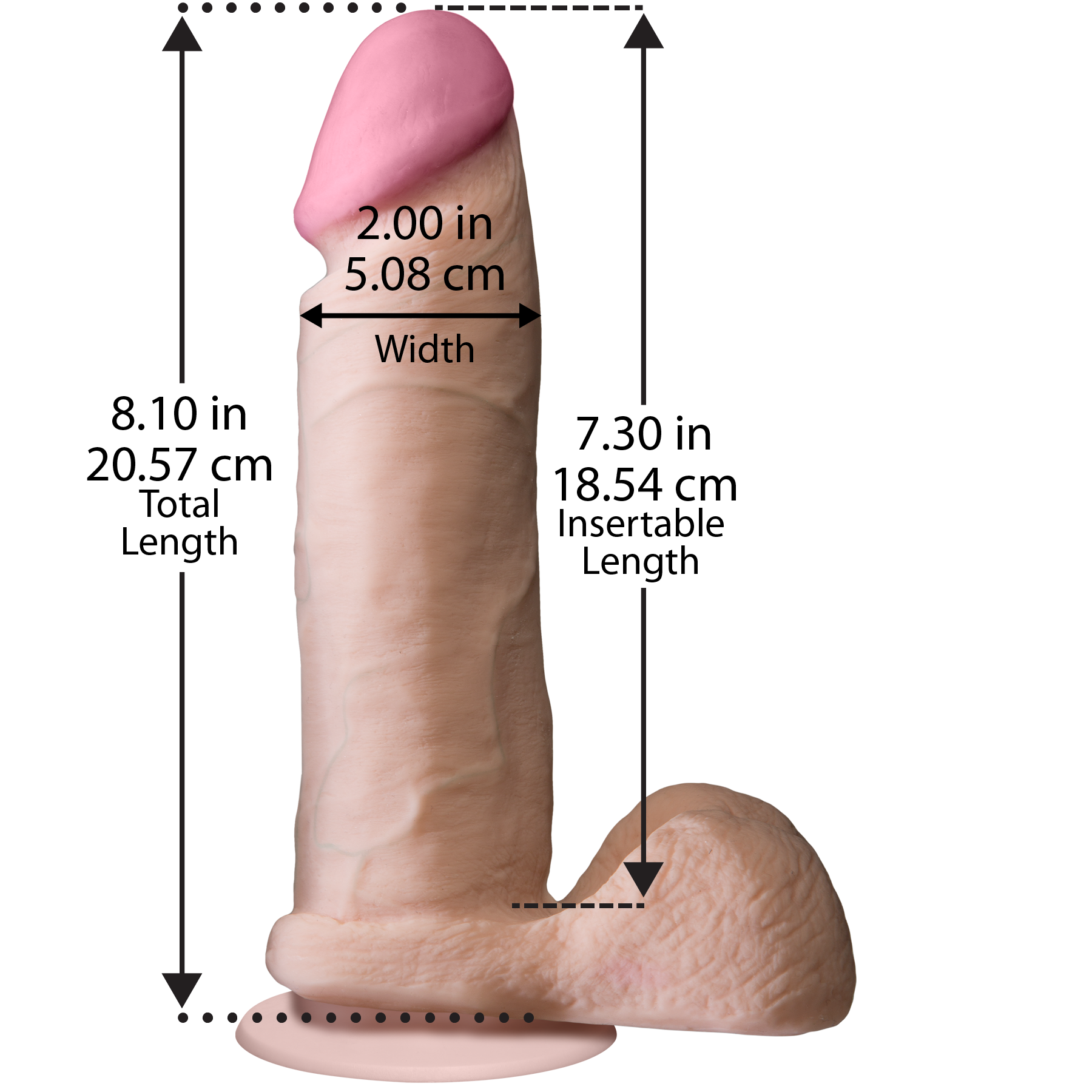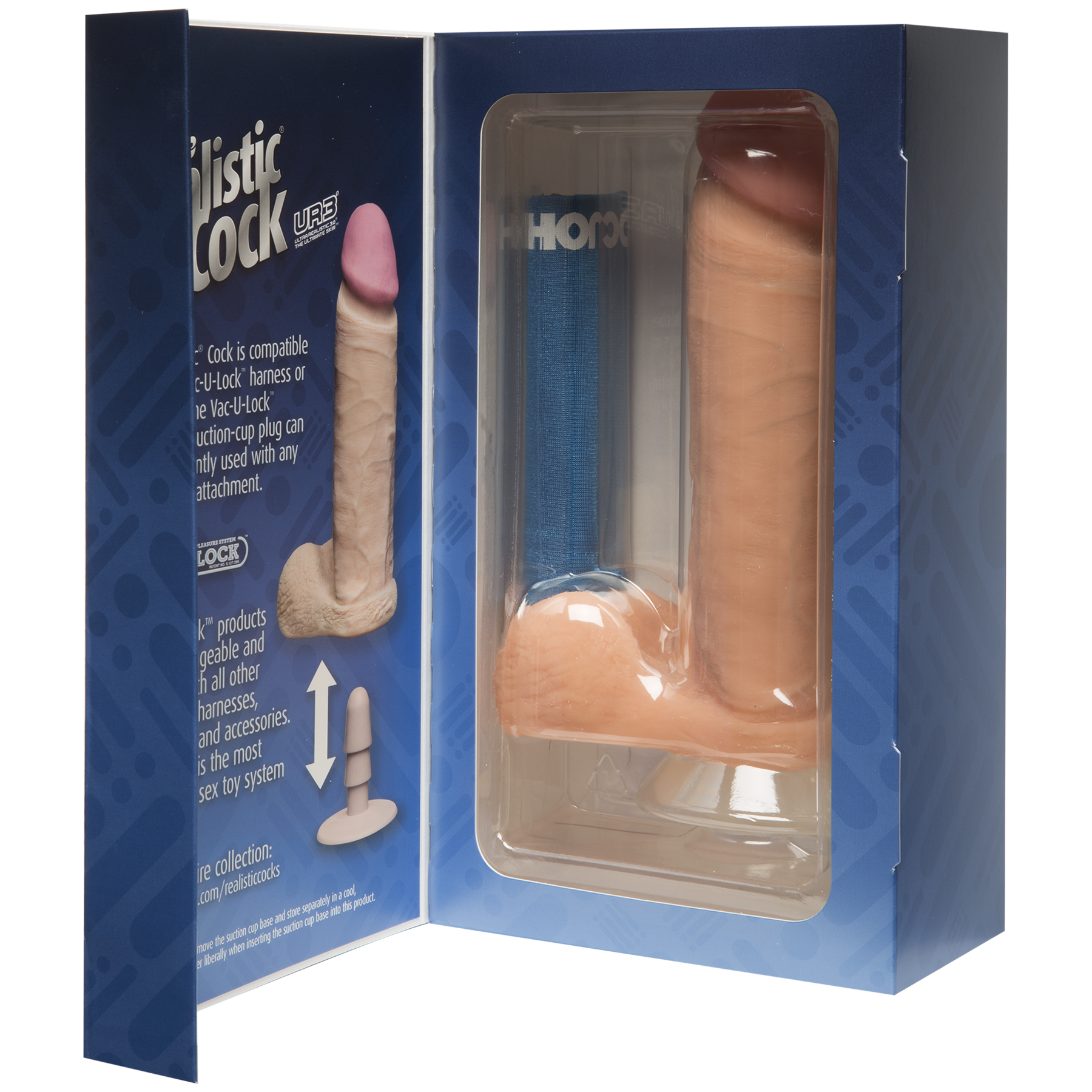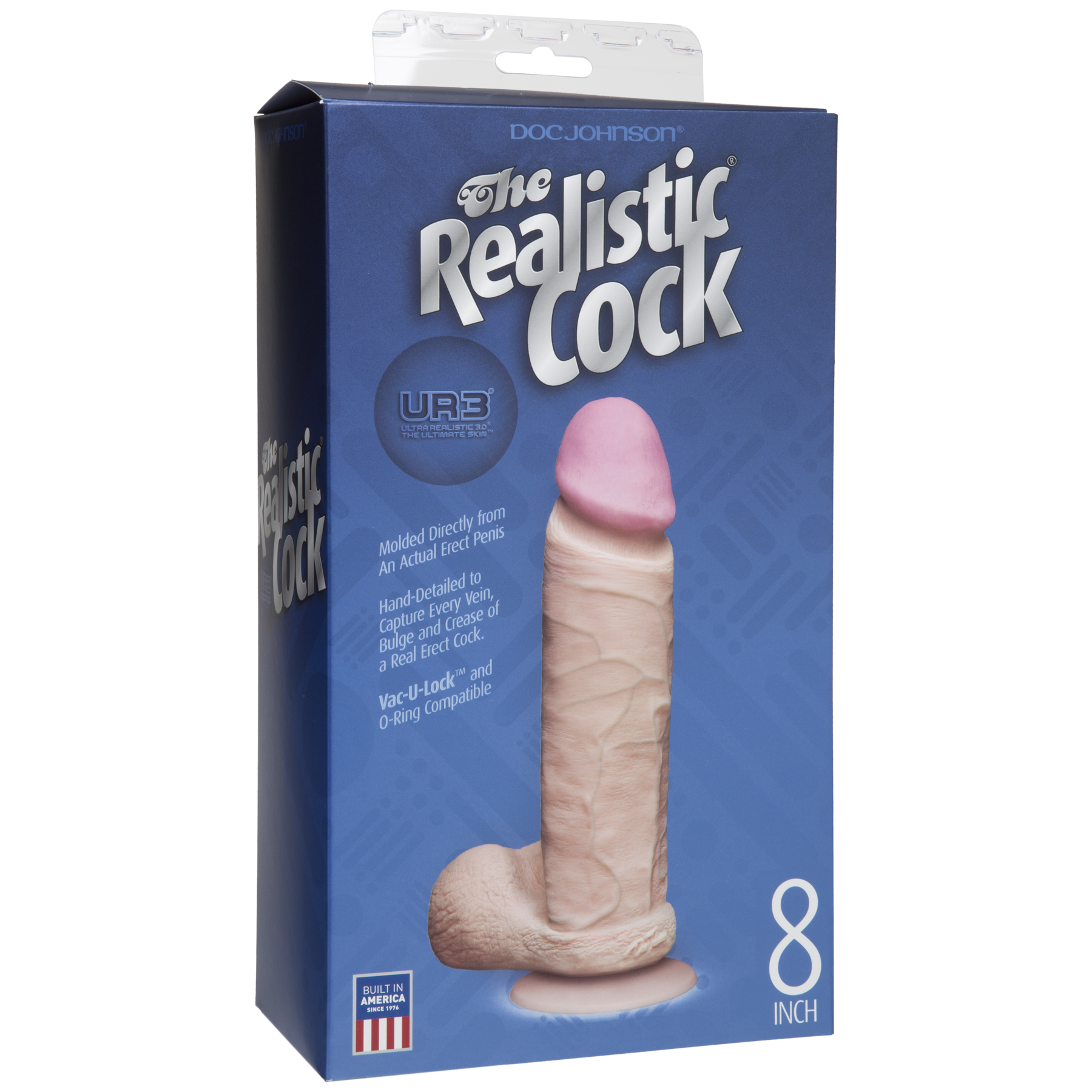 The Realistic Cock 8 inch имеет крепление Vack-U-Lock, за счет чего он полностью совместим с поясами и другими аксессуарами для страпонов. Данный фаллоимитатор обладает довольно большими размерами, в комплекте с ним идет съемная присоска с Vack-U-Lock креплением.