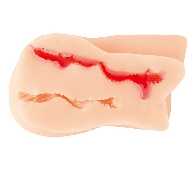 В комплекте: мастурбатор, лубрикант имитирующий кровь, тальк для ухода за игрушкой и защитная водонепроницаемая пленка.