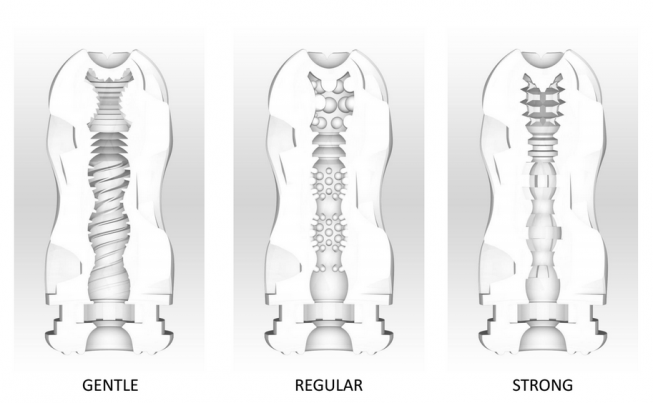 REGULAR (Средний) — классическая плотность обхвата. Материал и внутренняя текстура этой модели напоминает Tenga Deep Throat (Original Vacuum) Cup, но благодаря вакуумным камерам имеет лучший всасывающий эффект. Внутренняя текстура этой модели богата узлами, после которых идут ребра и в конце туннеля завершают рисунок более крупные бугорки для массажа головки.