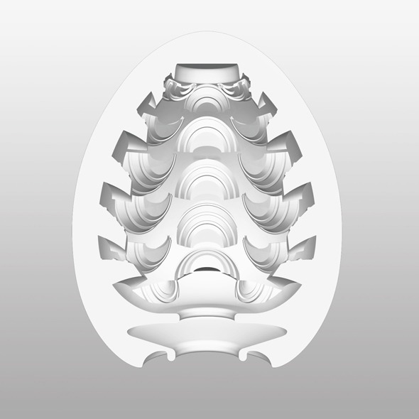 Внутренняя поверхность этого мастурбатора имеет большое количество рельефных полукруглых выступов. Эти выступы направлены в противоположные стороны и чередуются столбцами.