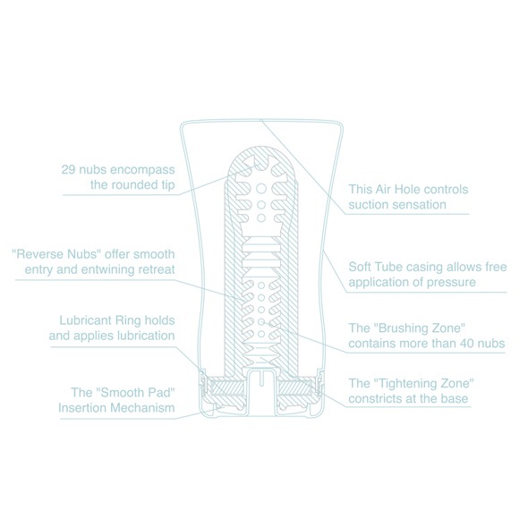 Структура мастурбатора имеет такую форму, чтобы при движении пениса внутри создавался перепад давления и ощущался эффект подсасывания. Интенсивность подсасывания можно регулировать отверстием на конце мастурбатора.