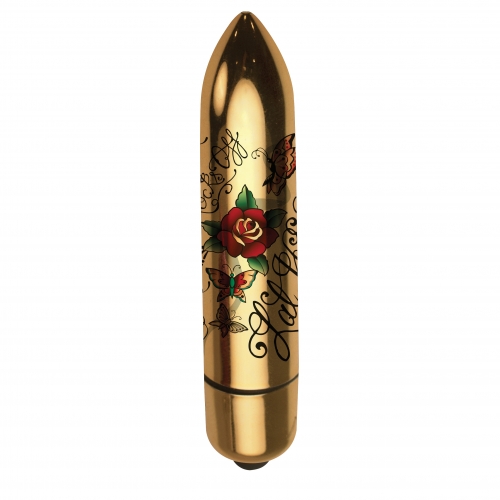 Вибратор Rocks Off RO-80mm TATTOO - компактная секс-игрушка для сильной стимуляции. В Вашем распоряжении 7 режимов вибрации. Водонепроницаемый материал изделия дает возможность менять локации и вносить разнообразие в Вашу сексуальную жизнь. Форма вибропули идеально подходит для игры с сосками, клитором, головкой пениса, мошонкой. На основании пули размещена кнопка регулирования. С ее помощью Вы можете включать и выключать игрушку, управлять мощностью вибраций. Вибратор сделан из пластика высокого качества, неприхотлив в уходе.