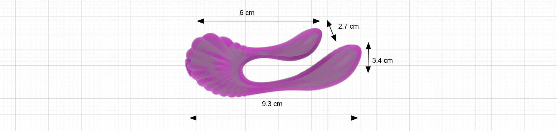 Благодаря своей U образной форме, вибратор можно использовать для одновременной анальной и вагинальной стимуляции. Или, перевернув игрушку, воздействовать на клитор и точку G. Также можно использовать во время полового акта.