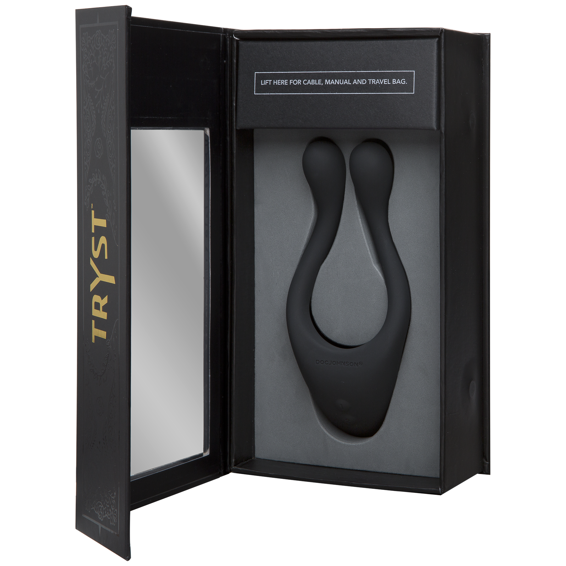Вибратор Doc Johnson Tryst - это мультифункциональный вибратор премиум-класса, разработанный как для парных игр, так и для одиночного использования. Этот массажер можно использовать как эрекционное кольцо для пениса, в соло играх в качестве вибратора точки G или как стимулятор клитора и сосков. Doc Johnson Tryst оснащен 3 мощными моторчиками (один в основании и еще по одному на концах “ручек”), которые работают независимо друг от друга. Что касается режимов, то у этого вибратора есть 7 режимов стимуляции эрогенных зон, и каждый из трех двигателей может регулироваться индивидуально. Сделан вибратор из силикона высокого качества, поверхность игрушки является мягкой и шелковистой.