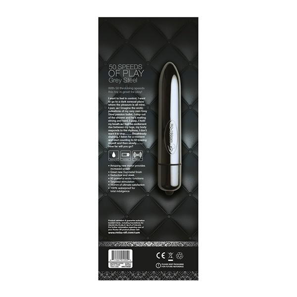 В продолжение культовой истории «50 оттенков серого», Rocks-Off выпустили свой уникальный водонепроницаемый вибратор Rocks Off 50 Speeds of Play - Grey Steel, в котором запрограммировано целых 50 различных, неповторяющихся между собой типов вибраций, пульсации и эскалации. Все режимы отличаются по частоте, силе и скорости.