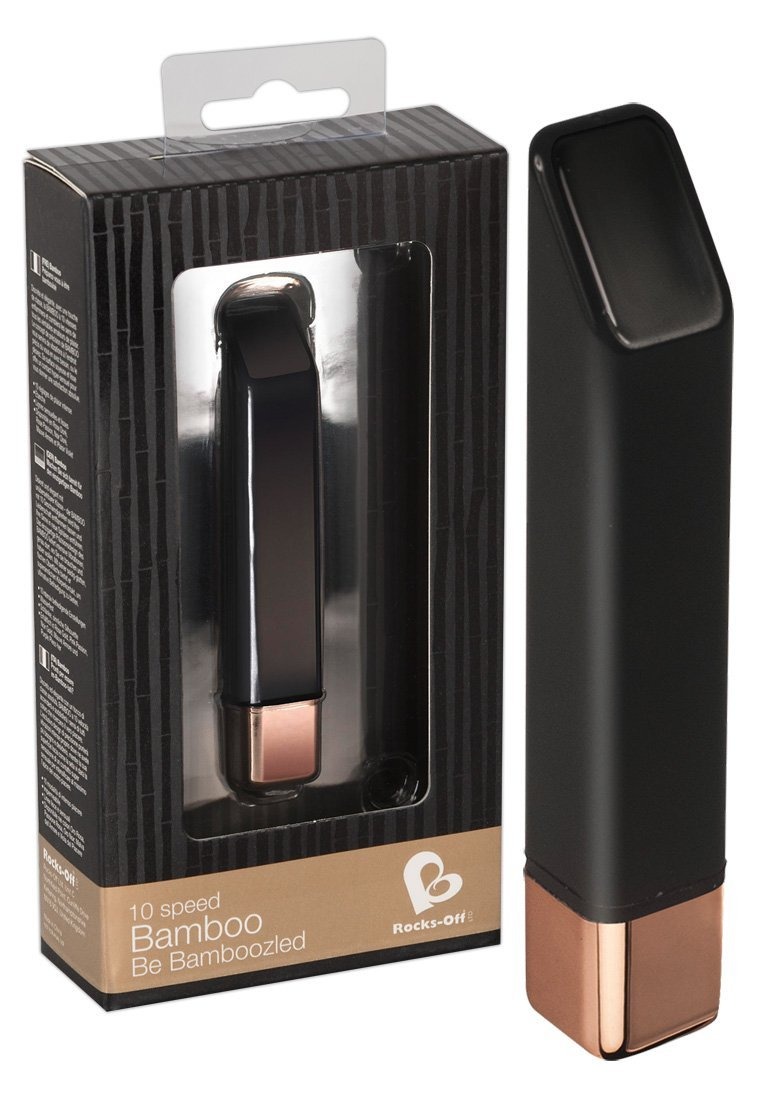 Rocks Off Bamboo отлично может поместиться в женской сумочке, косметичке и даже просто в кармане. Благодаря своему дизайну, не каждый сможет догадаться, что же таится под этими строгими формами. Необычная форма вибропули способствует эффективной клиторной стимуляции. Качественный полированный пластик, абсолютно безопасный для здоровья. Rocks Off Bamboo имеет 10 режимов вибрации: от самого легкого ненавязчиво-подразнивающего до самого сильного. Полностью водонепроницаемый, его можно использовать в ванной или под душем.