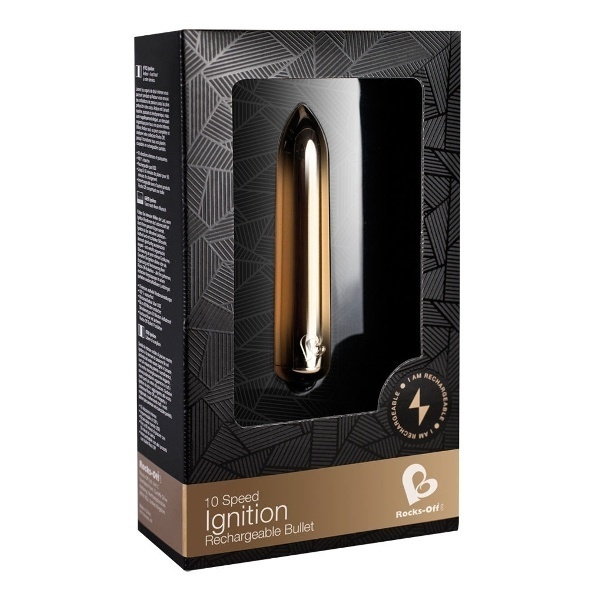 Глянцевый и стильный, идеально гладкий Rocks Off Ignition Gold порадует Вас не только своей функциональностью, но и дизайном. Вибропуля, в отличие от других аналогов, удивит Вас 10 интенсивными режимами вибрации. Вибратором достаточно легко управлять: нажмите 3 секунды на кнопку — игрушка либо включится, либо выключится. Переключение режимов вибраций осуществляется быстрыми нажатиями на эту же кнопку.