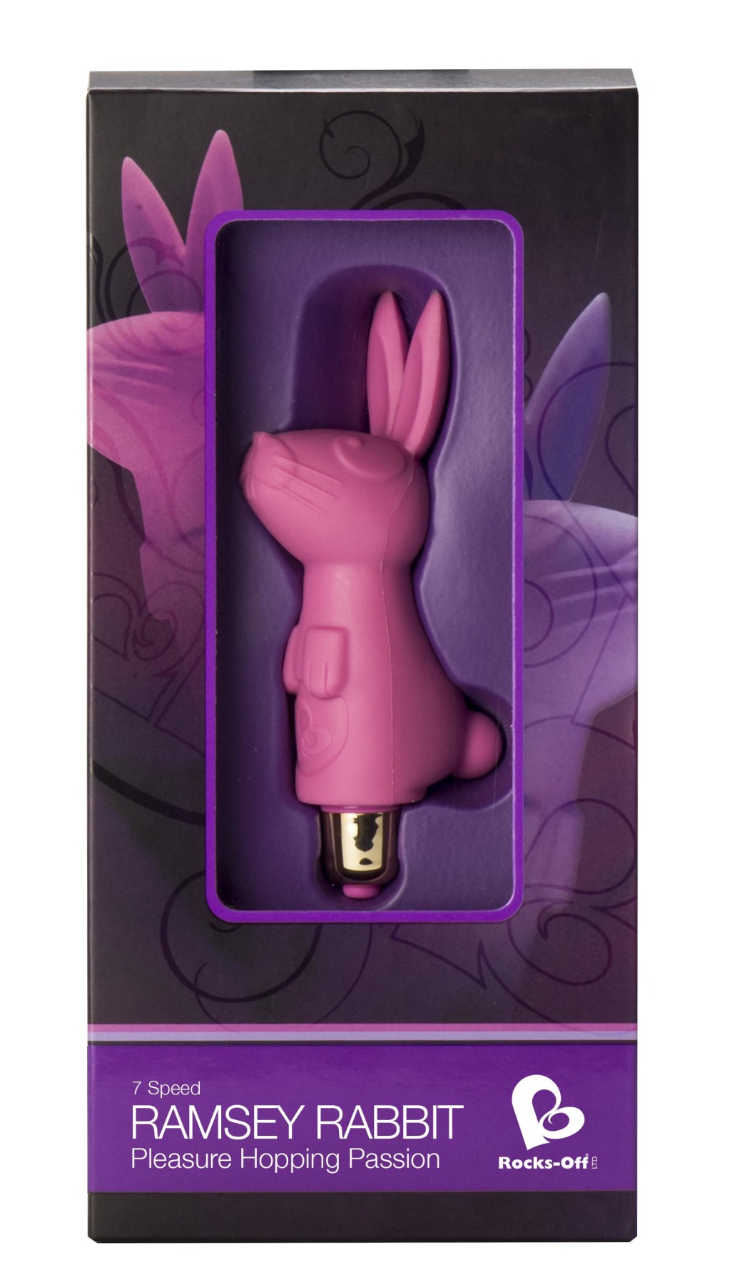 Вибратор Rocks Off Ramsey-Rabbit 7 состоит из насадки в форме кролика и вибропули RO-80mm. Подходит для разного типа стимуляций. Ушки кролика Рамси предназначены для нежного воздействия на клитор. Вибратор Ramsey-Rabbit 7 обладает семью различными видами вибрации. Их достаточно легко переключать, а также включать и выключать само устройство, кнопкой у основания вибратора. За счет своего водонепроницаемого корпуса, Рамси может быть использован как в ванной, так и в душе. Вибропуля RO-80mm, которой оснащен Ramsey-Rabbit 7, может быть легко извлечена из корпуса вибратора и использована отдельно.