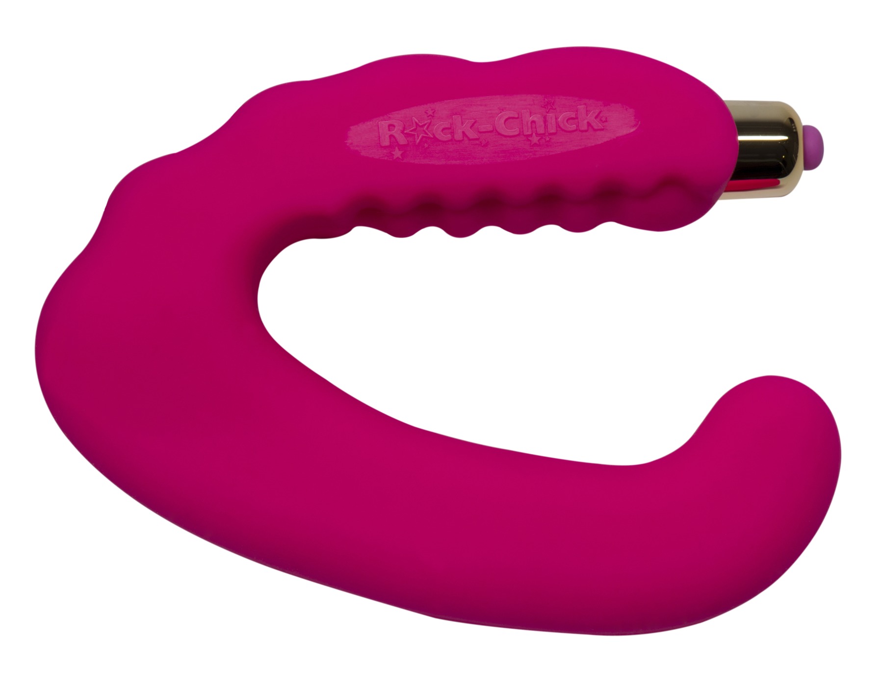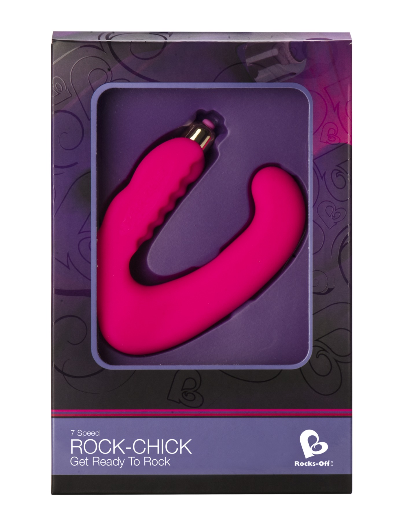 Rock-Chick – вибратор, который может ласкать одновременно две эрогенные зоны женщины — клитор и точку G. Вагинальный отросток имеет изогнутую верхушку, предназначенную для массажа точки G. U-образная форма стимулятора позволяет разогнуть игрушку, придавая ей практически любую форму, а упругий материал, из которого она сделана, пружинит вибратор. Вторая часть призвана стимулировать клитор: в полый отсек вставлен съемный мини-вибратор. Ребристая насечка на внутренней стороне клиторального стимулятора еще больше усиливает ощущения.