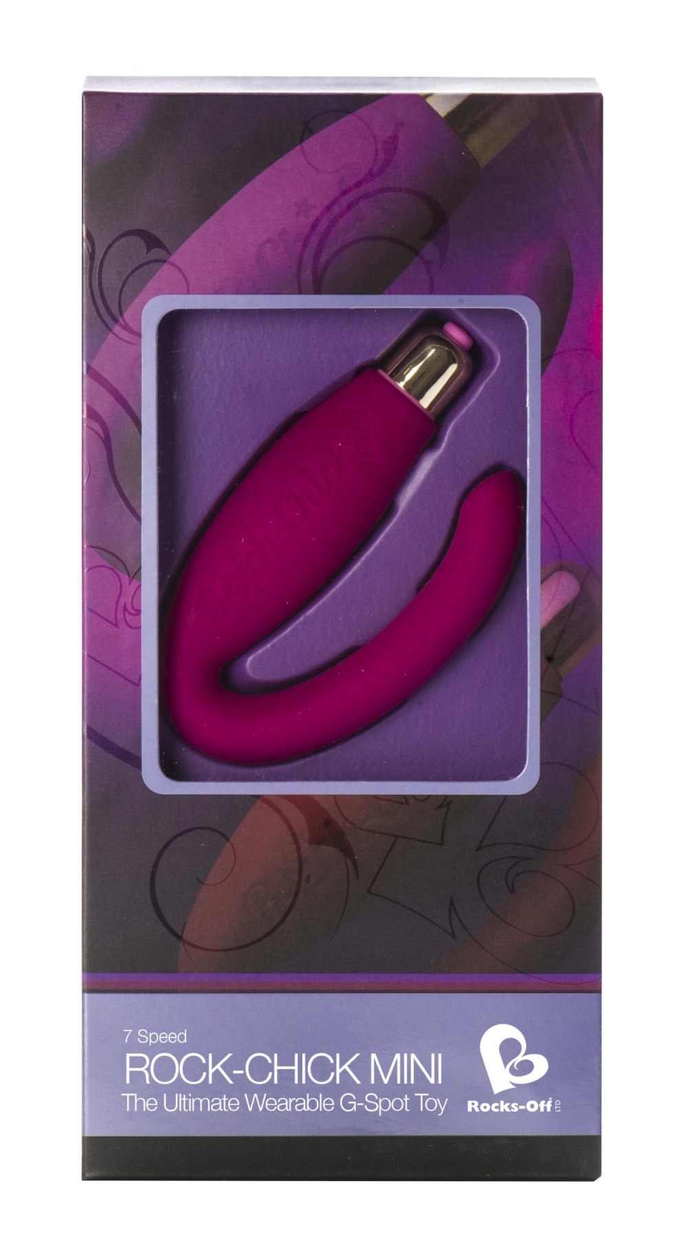 Rock-Chick Mini – вибратор, который может ласкать одновременно две эрогенные зоны женщины — клитор и точку G. Вагинальный отросток имеет изогнутую верхушку, предназначенную для массажа точки G. U-образная форма стимулятора позволяет разогнуть игрушку, придавая ей практически любую форму, а упругий материал, из которого она сделана, пружинит вибратор. Вторая часть призвана стимулировать клитор: в полый отсек вставлен съемный мини-вибратор.