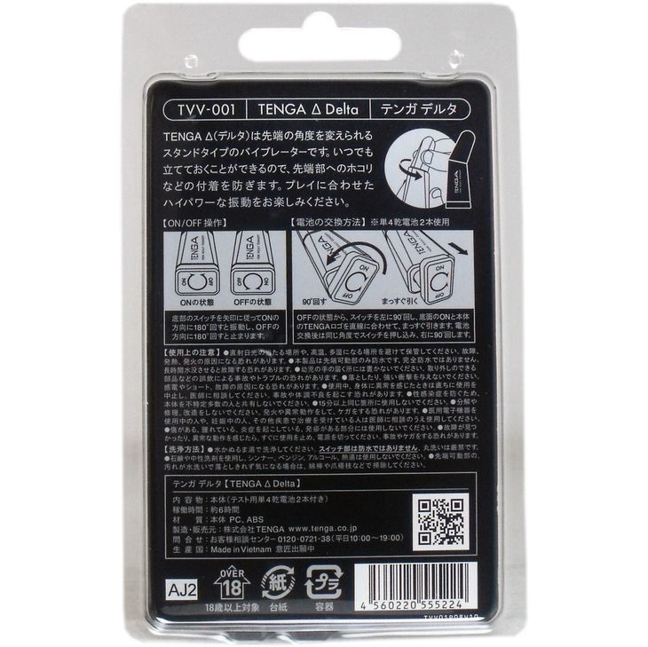 TENGA Delta – по-настоящему стильный вибратор от TENGA. Особенность данной модели - поворотный механизм, который позволяет изменять угол наклона кончика вибратора. Благодаря этому можно выбрать наиболее удобное положения для его использования. TENGA Delta оснащен мощным моторчиком и одним режимом вибрации. Это очень компактная игрушка, за которой легко ухаживать. При небольших размерах данный вибратор очень удобно ложится в руку. Мощный моторчик Tenga Delta работает в одном режиме интенсивной вибрации до 6 часов. Для включения вибратора необходимо повернуть нижнюю панель на 180 градусов по направлению стрелки “ON”.